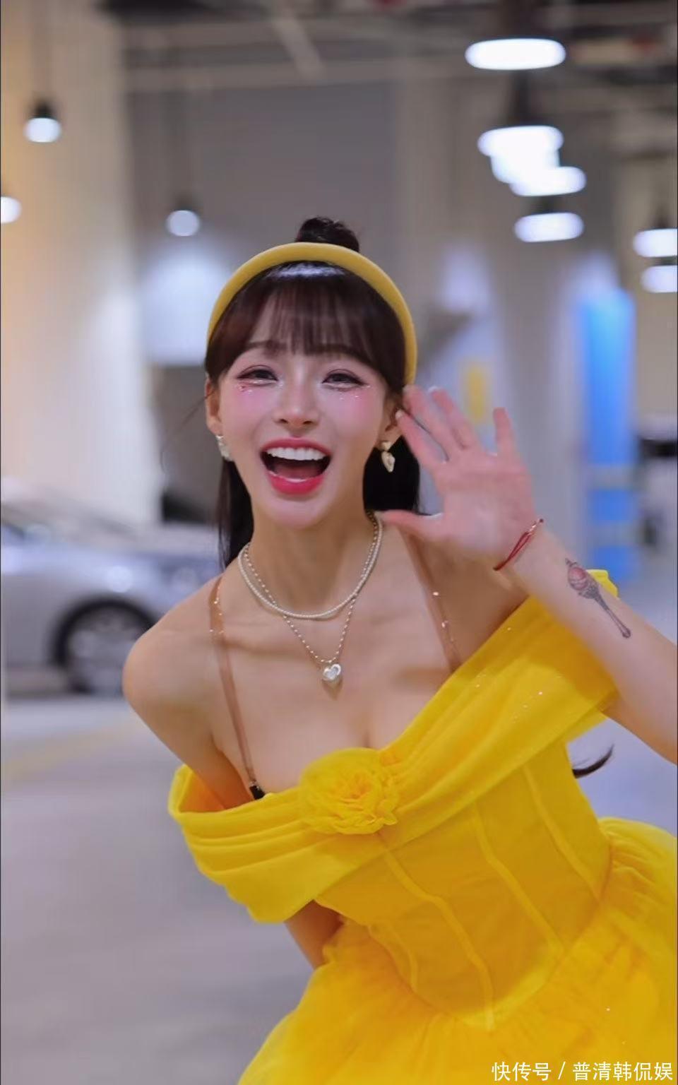 林襄化身成为「真人版」的贝儿,舞会长裙当然未能掩盖她澎湃上围,在小跳步展示造型时,胸前波涛汹涌,与童真笑容形成强烈反差。